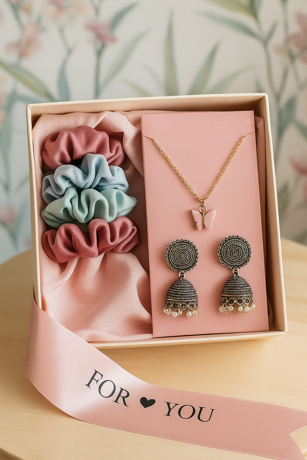 A curated hamper that symbolizes love, grace, and forever style. The Forever Elegance Hamper is designed to complement every mood and occasion with accessories that never lose their charm💫